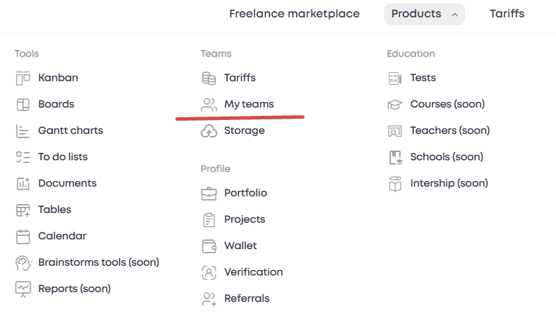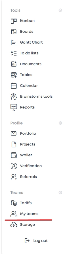 Through horizontal menu: "Services" tab → "My teams" section